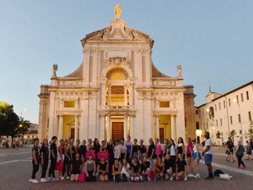 On June 20, 2022, our director Sherene Melania led our delegation of 62 to Assisi. We performed as guests of the Piazza Inferiore di San Francesco, a UNESCO World Heritage site and an important landmark in Italy. We had the pleasure of performing with the Rondine Balletto di Assisi in front of the Basilica di Santa Maria degli Angeli, and we are grateful to Mayor Stefania Proietti and the City's gracious welcome.